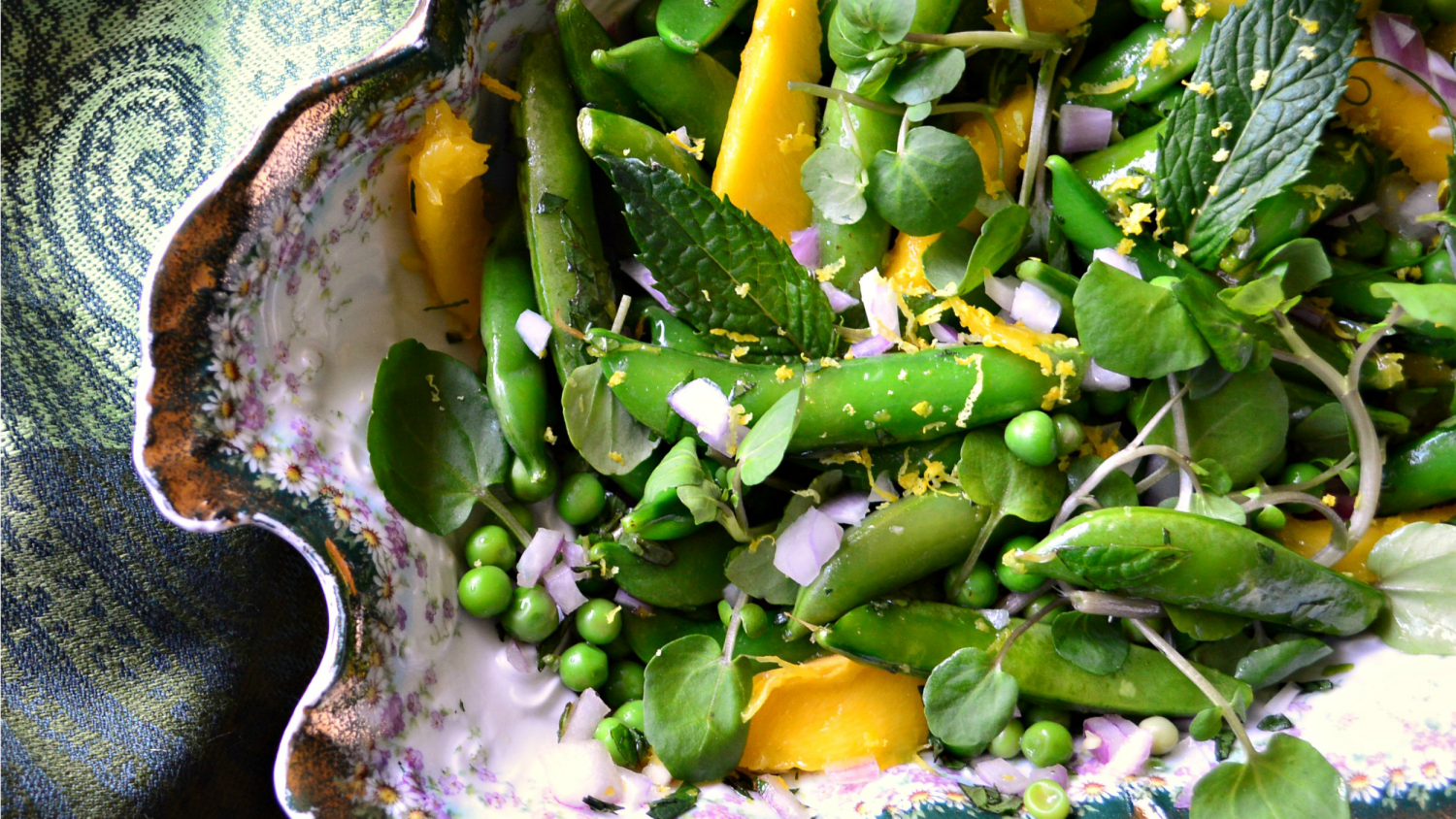 Asparagus Snap Pea Salad Asparagus Snap Pea Salad / A homemade vinaigrette completes the vibrant flavors in this dish.