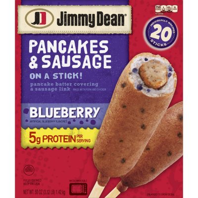 Blueberry Pancake Sausage On A Stick Blueberry Pancake Sausage On A Stick / The recipe calls for a stick of melted butter and it makes the pancakes super rich.