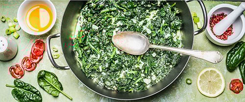 Healthy Creamed Spinach Healthy Creamed Spinach - The spinach in creamed spinach is good for lowering blood pressure because it has potassium, folate, and magnesium.