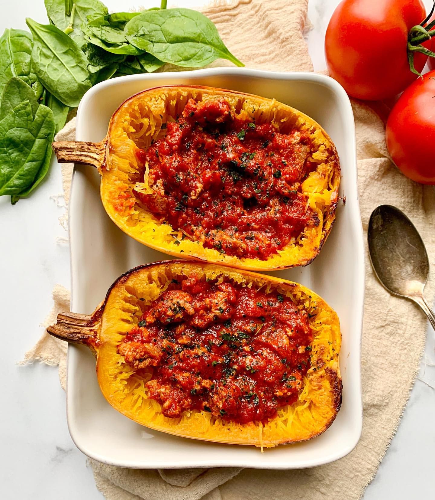 Spaghetti Squash With Tomato Sauce By Organicallyaddison Quick Easy Recipe The Feedfeed - This recipe is so easy and adaptable to what ever meat you like.