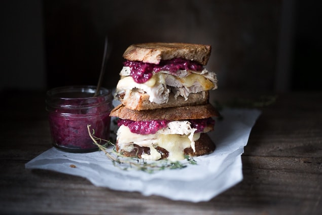Turkey Cranberry Cheese Sandwich Turkey Cranberry Cheese Sandwich / Layer 4 slices of bread with the turkey, apple, cheese, onion, and lettuce.